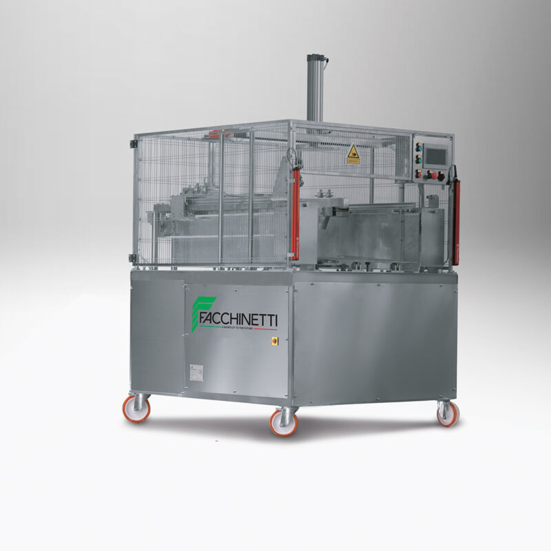 Facchinetti DSG02, sert ve yarı sert peynir tekerleklerini önceden belirlenmiş yükseklik veya sayıda diske bölen kompakt elektro-pnömatik bir makinedir. Yer tasarrufu sağlayan yapısıyla orta ölçekli üretimler için idealdir.